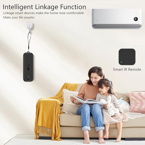 - SMART SCENE TO TRIGGER DEVICES: The Indoor Humidity Meter can be linked with other Tuya smart devices, such as smart plugs, smart IR remote, fans, etc. You can set a scene to turn your AC on/off when the temperature reaches the limit value, or the dehumidifier in your room starts working once the humidity is over higher