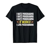 I Hate Programming It Works I Love Programming For A Programmer is perfect for any coder or for programmers who love computer programming language and coding. This Computer Programming design is perfect for any coder who loves hardware or software programming and is ideal for any programmer who enjoys computer programming and computer science. Lightweight, Classic fit, Double-needle sleeve and bottom hem