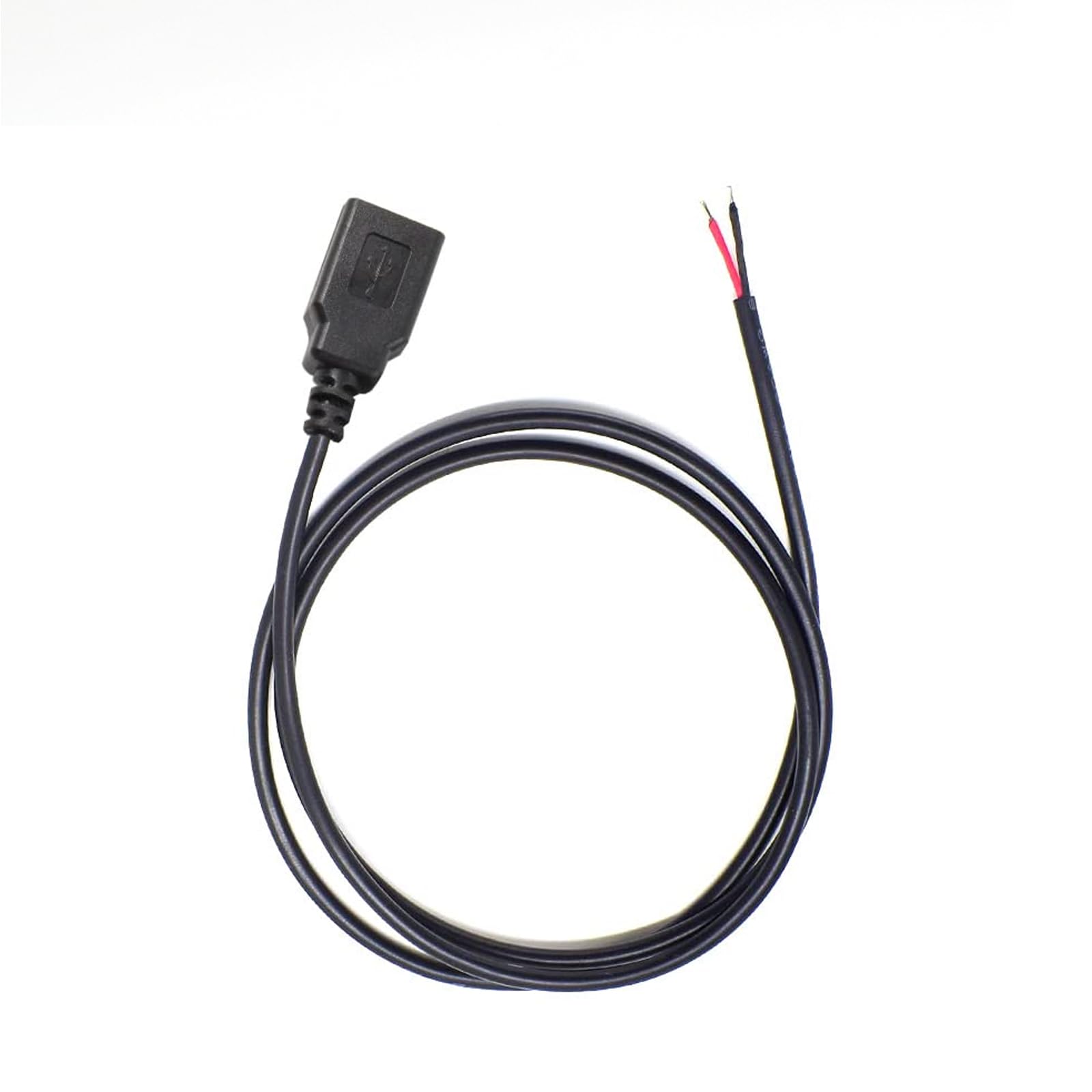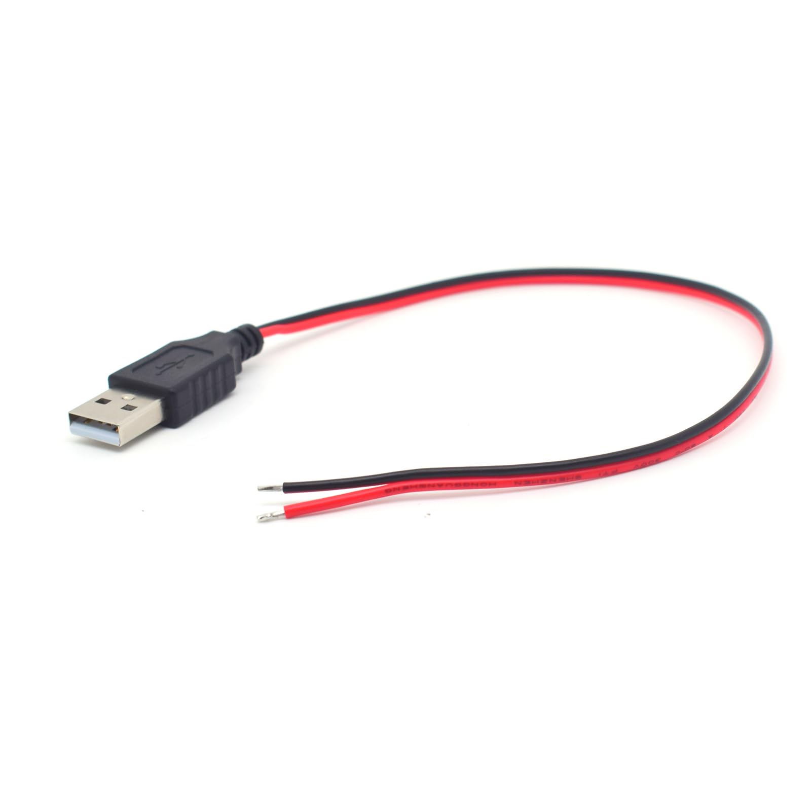 - USB Type A Pigtail Cable Details: USB to bare wire open ends cable length is 0.3M/1FT, with one end being a USB male plug and the body of the wire is composed of two wires, black and red. 22AWG,Current: 3A, voltage: 5V,Package includes 1 PCS