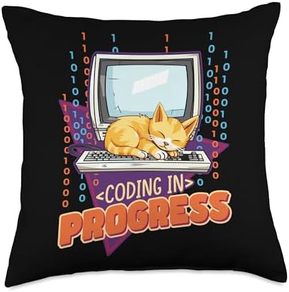 Funny Coder Cat Coding in Progress for Software Developer Throw Pillow