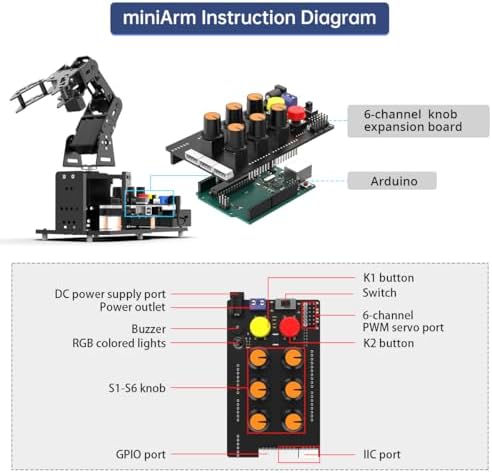 - Versatile Control Options. miniArm supports app control, and users can utilize knob potentiometers for real-time knob control and offline action editing.