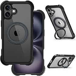 - MAGEASY Case for iPhone 16 Plus - 20ft Ultimate Drop Protection, Case with 360° Rotatable Stand, Premium Vegan Leather Frame, Compatible with MagSafe | Odyssey Stand M (Leather Black). [Top Tier 20ft Drop Protection] Designed with reinforced bumper at each corner to enhance shock absorption, ensuring protection against the highest level impacts. Also featuring an unique honeycomb structure for the frame and a PC high-transparency reinforced back panel, providing the top-grade protection for your expensive phone. [Built-In 360° Rotatable Stand] Enjoy hands-free convenience with our built-in 360° magnetic ring stand. Perfect for video calls, streaming, and more. Compatible with MagSafe for wireless charging and easy mounting. [Prestige Quality That Matches Your i Phone] Frame made of premium vegan leather & robust shock absorbing TPU, crafted using top-tier techniques to enhance the tactile and visual details to give you the best of the bests. [Camera Lens Protection] The bezel around the lens is raised higher than the lens, providing reliable protection for your delicate phone lens. [Compatible with MagSafe] Odyssey Stand M is compatible with MagSafe accessories such as magnetic power bank, magnetic car mount, wireless charging, etc, unlocking more advanced functionalities.