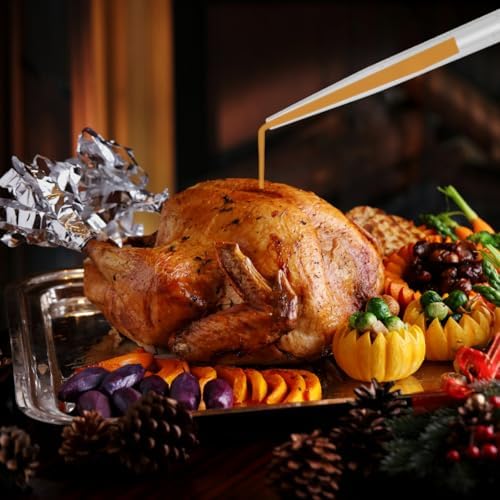 - 😋【Kitchen Helper】Impress your family at Christmas, Thanksgiving, or any family get-together by making tender, juicy meats with our premium turkey baster. Whether you're roasting a turkey, grilling a chicken, or adding flavor to your meats, this turkey baster allows you to effortlessly drizzle hot liquid for moist, tender results. It's a must-have tool for creating the perfect juicy turkey your family will love.