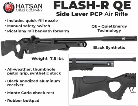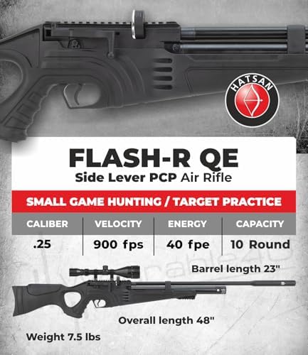 - In The Box: 1x Hatsan Flash-R QE .25 Cal Side Lever PCP Regulated Air Rifle; 1x Pack of Air Rifle Pellets; 1x Pack of Targets; 1x Scope; 1x Case