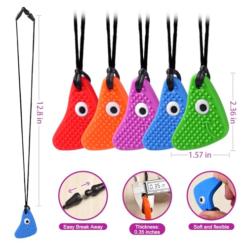 Chew Necklaces for Sensory Kids, Seeway Chewy Necklace Sensory Motor Aids, 5 Pack Silicone Sensory Chew Toys, Different Textures Chewelry, Improve Concentration, Strengthen Oral and Facial Muscles