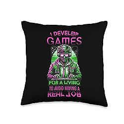 - For indie game developers who love coding and programming humor, this "I develop games for a living to avoid having a real job" design featuring a programmer is perfect for those who develop games.For Indie Developers who love coding games, this humorous design with a vaporwave touch is a perfect match. Show your passion for game development with this unique programmer design. A must-have for any game coder with a sense of humor.