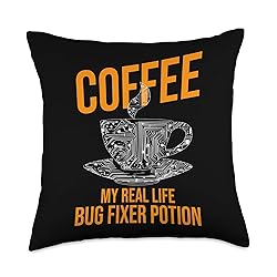 Coffee Lover Game Dev Bug Fixing Humor Programming Throw Pillow