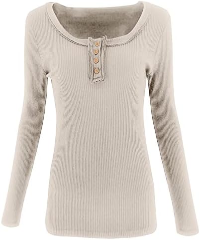 Henley Tops for Women Women's Long Sleeve Henley T Shirts Button Down Slim Fall Fit Tops Scoop Neck Ribbed Knit Blouse