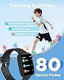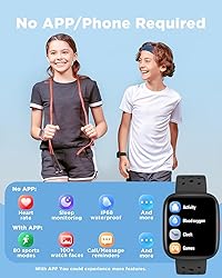 All-Day Activity Tracking: BIGGERFIVE BRAVE 2 Smart Watch for Kids Teens Automatically counts steps, distance, calories burned, and active minutes. Supports 80 sports modes like walking, running, cycling, basketball, and more. Without/With APP: BIGGERFIVE kids fitness tracker watch can be used seperately without APP and phone. But with APP, you could explore more functions. Compatible with Android 6.0+ and iOS 9.0+ smartphones. Comprehensive Health Monitoring: Monitors real-time heart rate and tracks sleep patterns to promote your child's well-being. Customizable Watch Face &1.8" HD Touch Screen:Our kids smartwatch boasts a 1.8" HD touch screen and offers 100+ exquisite cloud dials in APP BIGGERFIVE. Elevate personal style with custom dials using your kids' own photos and ignite their creativity! Puzzle Games under Parents' Control: 5 built-in puzzle games can help train your child's reaction ability and calculation ability. You could restrict your child from playing games at school in the BIGGERFIVE APP (supports also lock game all the time). Encourages Healthy Habits & Perfect Gift Idea: BIGGERFIVE kids smart watch motivates children to develop good exercise habits and stay healthier. Ideal gift for birthdays, Christmas, and other special occasions.