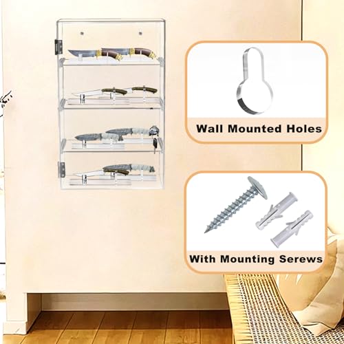 Acrylic Display Case with Lock Key 4 Tier Clear Display Case Locking Cabinet for Collectibles Figure Knife Rock Perfume Countertop Retail Showcase Display Box Wall Mount with Shelves 11.8x5.9x15.7 in