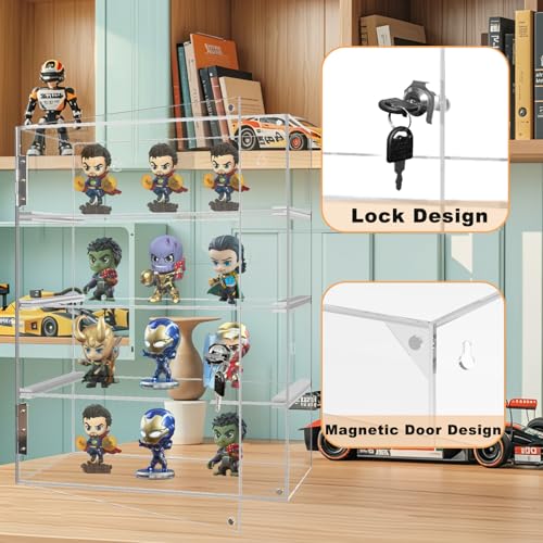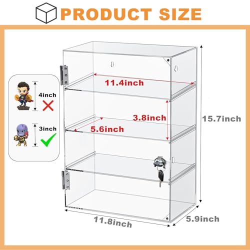 - 【ADEQUATE STORAGE AND DISPLAY SPACE】The acrylic display case size is 11.8 x 5.9 x 15.7 inches and comes with 4 Removable board, providing efficient storage in the acrylic display case of four layers. The height of each layer is 3.8inch, providing ample space to showcase your precious collections.