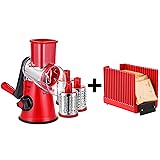 Cheese Grater - ✔Zero Injury & 100% Food Safety - No more touching blades, just forget about cutting to get injury. This rotary cheese grater protects you from the sharp blades, and all parts are made from food grade BPA-FREE material. Cheese Grater - ✔Make the Cutting Faster - Unique rotating drum cutting design, which makes the drum grater cut the ingredients 12x faster than other cheese shredders, effortless rotating and spend less time to get prep food. Cheese Grater - ✔Fast Clean & Space Saving - The cheese grater is detachable as well as it takes up a little cupboard base. You can simply clean the rotary grater under running water, it is also dishwasher safe. 🍞Perfect Slices - The bread slicer offers a convenient way to get even slices quickly and easily by simply slicing with a knife, suitable for bread to bagels to any pastries. Perfect for preparing your family's breakfast or baking with your friends and having fun! 🍞Folds Compactly for Easy Storage - The compact design ideals for folding the bread slicer away effortlessly even in a crowed kitchen. Plus, the bread slicer machine comes with 2 rubber pads to prevent the slicer from sliding during usage. After use the bread cutter, just rinse with water and wipe clean with a cloth.