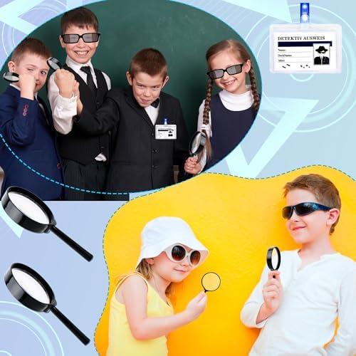 36 Pcs Kids Spy Kit Detective Toy Set Including 12 See Behind You Sunglasses 12 Secret Agent Name Tags 12 Black detective Mmagnifying Glass for Spy FBI Cosplay Escape Room Detective Party Supplies