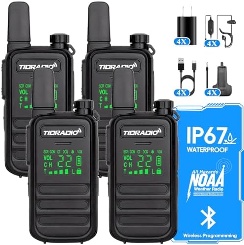 TIDRADIO TD-M11 Walkie Talkies Waterproof IP67, APP/Web Bluetooth Programming, Long Range FRS Two-Way Radios, Freq Copy, VOX, NOAA Emergency Weather Radio for Camping Hunting Gear, Black - 4 Pack