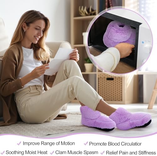 Cozypower Microwavable Slippers for Women Men Heated Booties Warming Slippers Heatable Wellness Boots with Moist Heat Therapy Comfortable Feet Warm for Foot Ankle Pain Plantar Fasciitis(Purple)