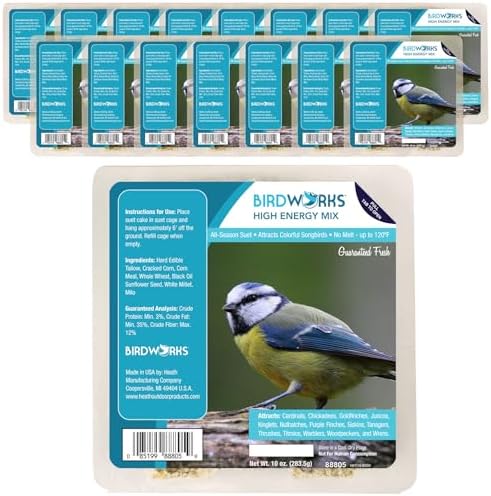 Heath Outdoor Products High Energy All Season No Mess Suet Cake Birders Pack, Food for Woodpeckers, Cardinals, Siskins, Sparrows, Finch's & Many More Wild Birds - 10oz, (Pack of 16)