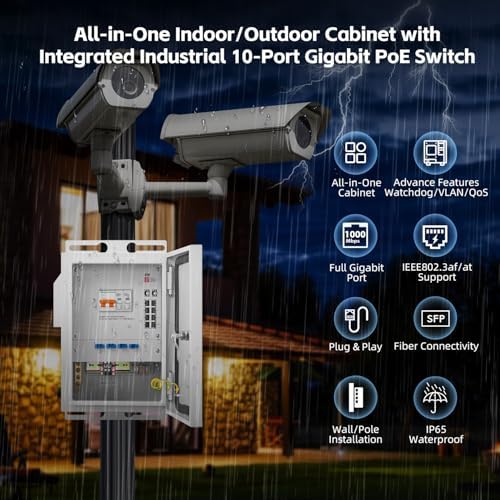 - NEMA-rated indoor/outdoor Industrial design: for non-ventilated & harsh environments, Wide operating temperature -40 to 70°C (-40 to 158°F), built-in fan for better heat dissipation; High-quality galvanized sheet thickness 1.2mm,Triangle lock, IP65 Weather-resistant, anti-corrosion, and vandal-resistant design. Support Pole /Wall installation