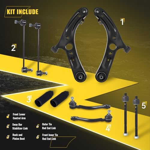 - Suspension Kit Include - 2 x Front Lower Control Arm w/Ball Joint - ( K622232 + K622646 ) + 2 x Front Stabilizer Sway Bar End Links - ( K750523 ) + 2 x Front Outer Tie Rod End Links - ( ES801074 + ES801075 ) + 2 x Front Inner Tie Rod End Links - ( EV800886 ) + 2 x Front Steering Rack and Pinion Bellow Boots