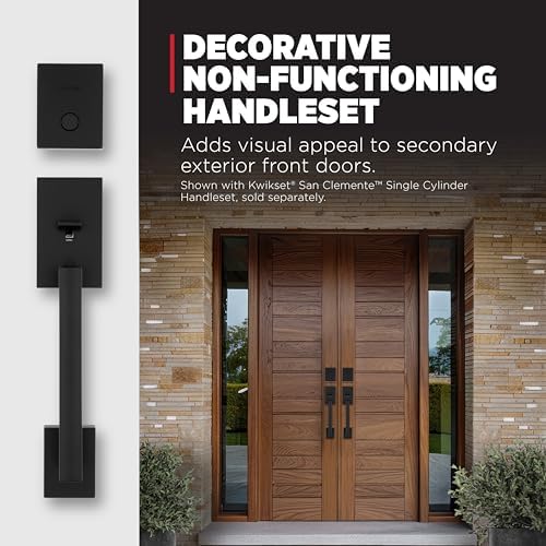 Kwikset San Clemente Non-Functioning Front Door Lock Handle, Inactive Deadbolt and Interior Door Handle, Dummy Handleset Exterior with Interior Reversible Lever, Matte Black with Microban Protection