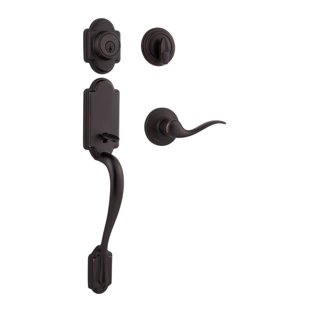 Step up to designer styles and superior security with Kwikset Signature Series products. The San Clemente handleset has a sleek, modern look. With clean lines and a variety of finishes, you can easily upgrade the entry to your home. San Clemente also features an adjustable screw that allows for easy door mounting and a guaranteed fit. The latch bolt is operated by the thumb piece on the outside and the grip on the inside. The deadbolt is operated by a key on the outside and a thumb turn on the inside. The rich tones of Matte Black add the finishing touch to this product. The Matte Black finish provides a rich and warm complement to the product’s style.