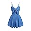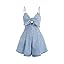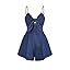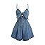 OYOANGLE Women's Vintage Bowknot Spaghetti Strap Denim Romper Sleeveless Wide Leg Jean Short Jumpsuits