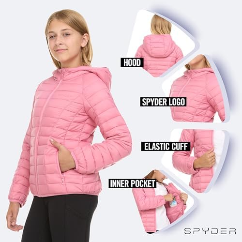 Spyder Girls Puffer Jacket with Hood Packable, Girls Winter Coats, Lightweight Ski Snow Outerwear