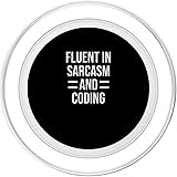 Fluent In Sarcasm And Coding. Funny Apparel for Coders MagSafe base attaches the PopGrip to your MagSafe-compatible case (not included). Printed top is swappable with other compatible PopGrip models. Just press flat, turn 90 degrees until you hear a click and remove to swap. Compatible with iPhone 12, iPhone 13, and iPhone 14 models. Works best with smooth, hard MagSafe compatible case. Wirelessly charge your iPhone by sliding off the magnetic PopGrip and setting your iPhone on a wireless charger.