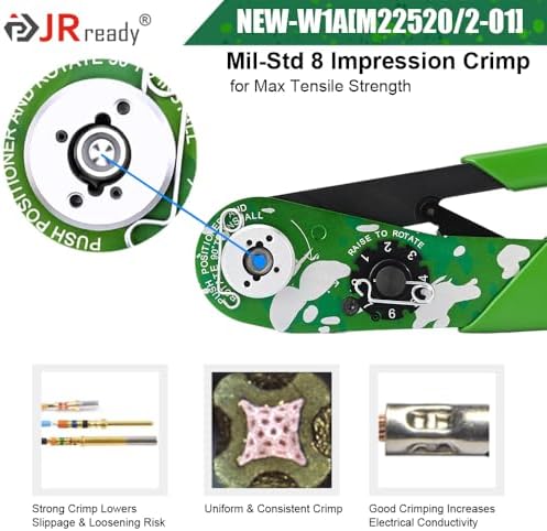 JRready NEW-W1A Indent impression Crimping Tool design according M22520 2 01 Crimper for miniature Connector and M39029 solid contact MIL connector etc. 20-32AWG Wire harness solid contact