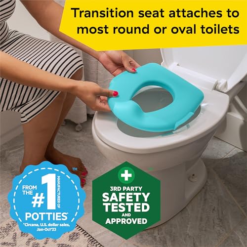 - Removable potty ring attaches to most oval or round adult toilets to help toddlers transition as they grow; Built-in handles help them feel secure and a splash guard keeps things clean