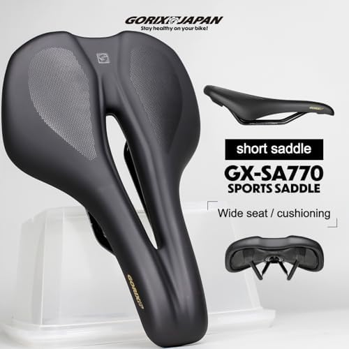 GORIX Bike Short Saddle Seat Short Nose Wide Hole Shock Absorption Road Bicycle (GX-SA770)