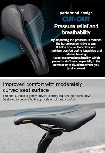 - [Perforated shape] The perforated shape in the center of the saddle reduces the burden on sensitive areas by dispersing pressure. It helps ensure blood flow and maintain comfort during long rides and intense training. It also improves breathability, which prevents stuffiness, especially in the summer or in situations where you tend to sweat.