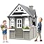 - [Realistic House Design]: This wooden outside playhouse can help children develop social and emotional skills. This charming playhouse features a hinged door, a working doorbell, flowerpot holders, a chimney, and a serving station. It's the perfect setting for imaginative play, where kids can engage in role-playing activities, develop friendships, and learn essential social skills like sharing and cooperation.