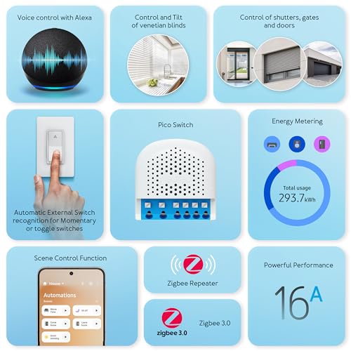 Pico Shutter - Zigbee | Blind & Shutter Control | Gate and Garage Door | Power Metering | SmartThings | HomeAssistant | Repeater Function | Scene Control | No Cloud Necessary | 2 x 3.6A