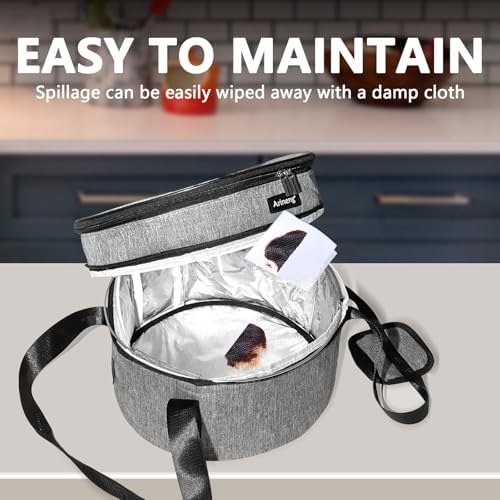 Pie Carrier, Hard-Sided Design, Insulated Bag For Casseroles, Round Insulated Cooler, Pie Tray With Lid And Handle For Hot And Cold Food Casserole Trays (Grey)