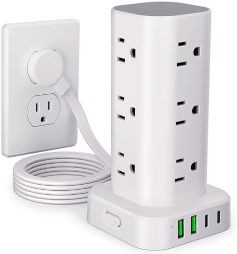 - 16 in 1 Power Strip Tower with USB: This surge protector power strip tower extends one socket to multiple outlets – 12 AC outlets and 4 smart USB ports (2 USB-A and 2 USB-C). Charge up to 16 devices simultaneously, keeping your desktop organized. Turns a single socket into a versatile multiport charging station, perfect for your home, office, or dorm room