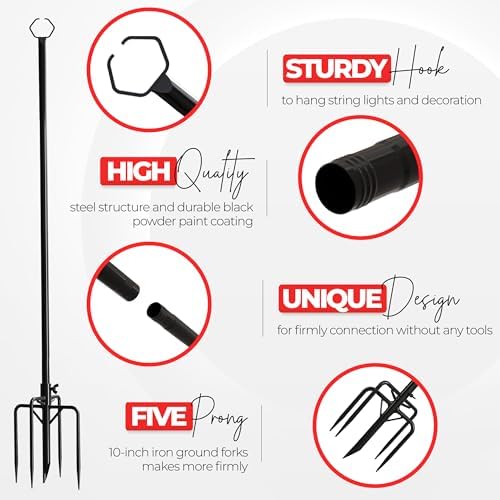 - Effortless Installation - The five prongs of the string light pole stands make the installation process easy as pie by soundly anchoring them in the ground. The light poles offer creative versatility for hanging decorations, displaying plants, and more.