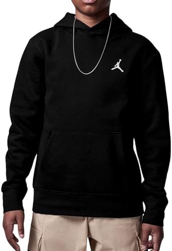 Crafted with cotton/poly fleece, this hoodie offers a smooth exterior and soft interior, making it a must-have for your wardrobe. Its relaxed fit, achieved through dropped shoulders, and the practical kangaroo pocket for storing small items or warming hands, ensure it becomes a regular favorite. Coordinate with other pieces from the Jordan Brooklyn Fleece collection for a cohesive look. Shown in Black, Style: 95D232-023.