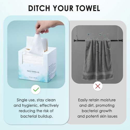 - [ HYGIENIC SKIN SHIELD TECHNOLOGY ] Laboratory tests prove reusable towels accumulate 600% more bacteria within 24 hours of use*. Our facial towels are designed for single-use, ensuring a fresh, sterile experience every time. The breathable grid structure prevents moisture retention - key cause of microbial growth in traditional terry cloths.