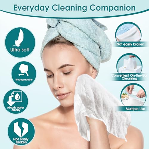 - [ SUSTAINABLE VERSATILITY ] Each biodegradable sheet withstands 3X more uses than typical disposables - perfect for gentle makeup removal, skincare tool maintenance, gym essentials, and delicate surface cleaning. (Tip: Reuse rinsed towels for eco-friendly household tasks)