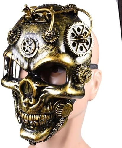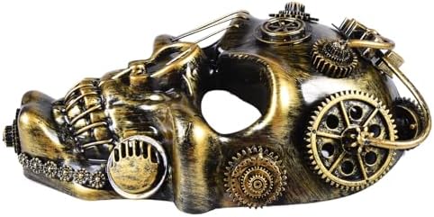 Steampunk Style Mask, Vintage Metallic Cyborg Skull Masquerades Mask for Halloween Cosplay Costume Party Props Material: plastic. Adjustable design: one size fits most. Size: 26 x 19 x 8cmWeight: 140g