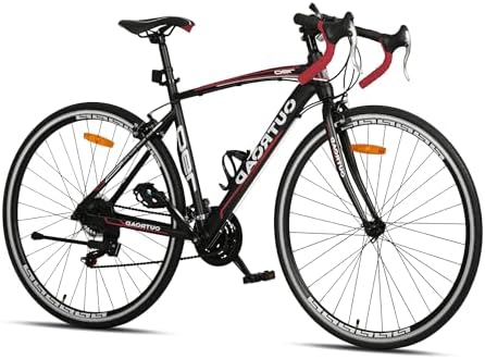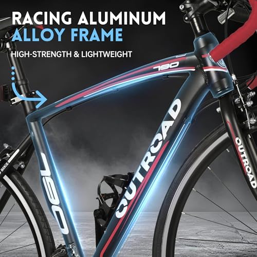 Outroad Road Bike 14-21Speed 700C Wheel with Light Aluminum Alloy Frame Commuter Bicycle with Dual Disc/V Brakes for Men and Women,21 Speed-red