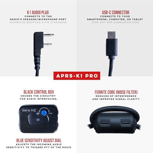 - USB-C and Kenwood K1 Standard Compatibility: The APRS-K1 PRO Cable features universal compatibility with USB-C devices and the Kenwood K1 accessory slot. It works effortlessly with hundreds of radio models, including those from BaoFeng, BTECH, Kenwood, Wouxun, TYT, and more, as well as with Android, iOS, Windows, and Mac systems.