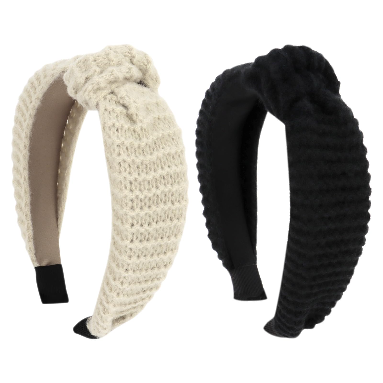 Knit Headbands for Women - Knotted, Large, Non-slip Thick Womens Winter Headbands - 2 Pack
