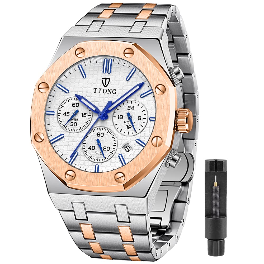 Quartz Men's Watches Stainless Steel Waterproof Dress Analog Wrist Watch for Men, Casual Business Sports Gift Wristwatch Leather Strap