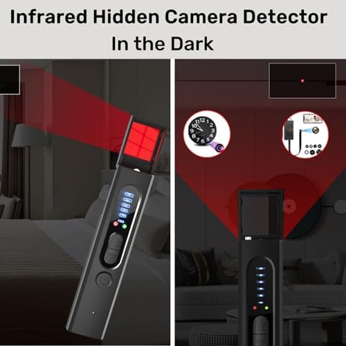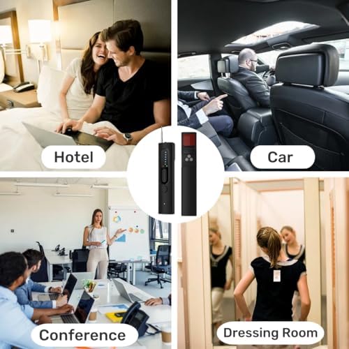 - [Full privacy protection] This hidden camera detector is designed to target loopholes on the market, such as loopholes, car trackers, mobile phone spyware, pinhole cameras, surveillance cameras, casino fraud and cheating devices. The device meets privacy issues such as travel and home security, ensuring your privacy and security.