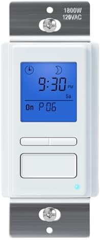 7 Day Programmable Light Switch Timer with Blue Backlight LCD Screen, In-Wall Timer Switch Automatically Turns On and Off Your Lights at Sunrise/Sunset for Fans, Motors - Neutral Wire Required