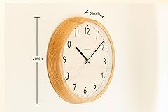 INTERZERO Wall Clock Japanese Handcrafted Round Solid Walnut Wood Wall Clock 12 Inch Silent Non-Ticking Battery Operated Modern Decorative for Living Room Bedroom Office Drop Clock CH-039 (Oak)