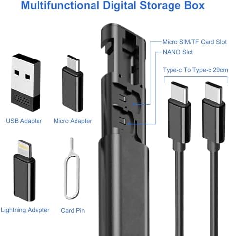 - 【Multifunctional USB Adapter Kit】 Our interchangeable charging cable is versatile and convenient to store. Type-c to Type-c;Type-c to Micro;Type-c to light-ning;USB to Type C, USB to Light-ning,USB to micro adapter. This multi usb charging adapter cable kit is used for charging and data transfer for iPhone iPad Sam-sung Android devices PC Computer and digital electronic gadgets, also contain a SIM card tray eject tool, SIM card, and SD card slots.