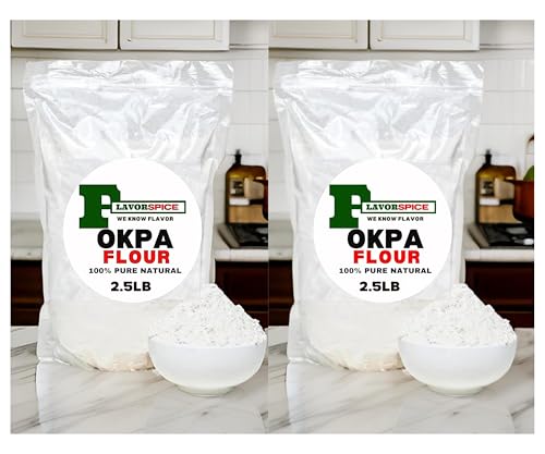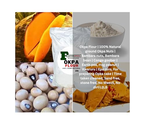 Okpa Flour 2.5LB | 2 PACKS | 100% Natural ground Okpa Nuts | Bambara nuts | Bambara bean | Congo goober | Earth pea | Hog peanut | Kwaruru | Epa roro | For preparing Opka cake | Time taken cleaned, Sand free, stone free, No Weevil, No dirt The English name for okpa is Bambara nuts. Okpa is a Nigerian delicacy made from Bambara nut flour, pepper, palm oil, and seasonings and has many other names in different languages, including: Igbo: Okpa, ịgba, and ntucha, Hausa: Gurjiya, kwaruru, and Bambara, Yoruba: Epa-roro, Idoma: Ikpe. Rich in protein and minerals and are considered a balanced staple food. Used in the preparation of Opka cake, African local delicacies. Our Bean powder do not require a lot of tedious work like soaking, cleaning, peeling, grinding, etc.