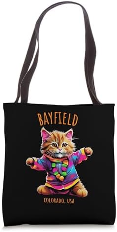 Bayfield Colorado USA Fun Cute Colorful Dancing Cat Design Tote Bag